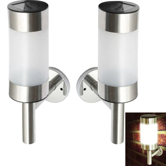 Solar wall light with 8-hour illumination from 2V 40mA solar panel and AA600mAh rechargeable battery, providing reliable outdoor lighting without electricity costs
