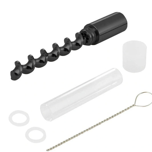 Spiral pipe atomizer with 78mm glass tube for dry herb consumption, featuring metal construction and 11mm diameter for consistent airflow and portability in a compact 101.2x51x20.5mm package