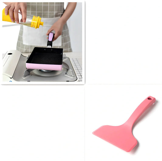 Square non-stick frying pan measuring 13×18cm with a 3.5cm depth that prevents smoke during cooking and weighs only 0.35kg for easy handling on induction, gas, and general-purpose stoves